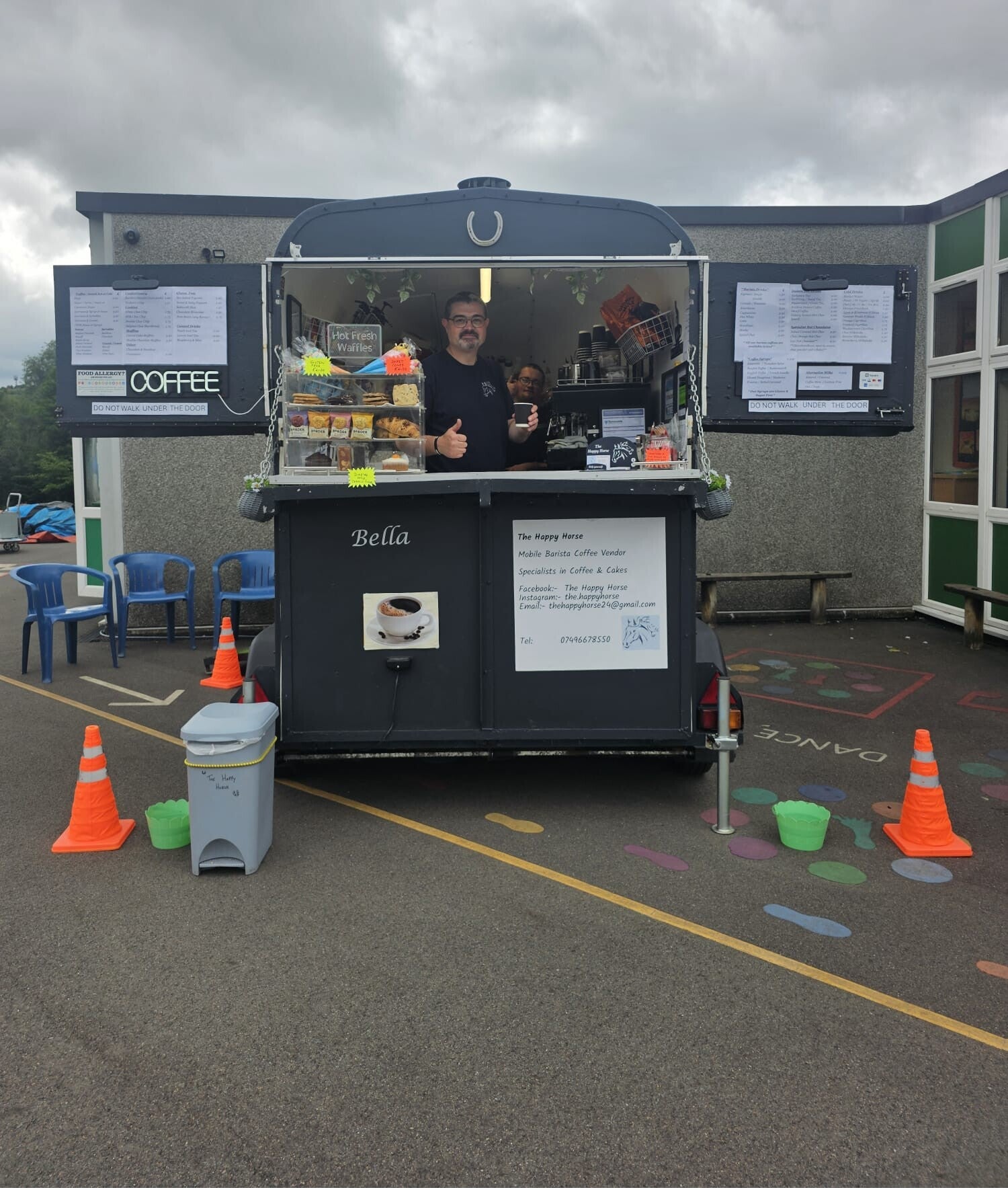 The Happy Horse is a mobile barista based in Tameside, Manchester, serving up delicious bean to cup barista coffee and hot / cold beverages from our converted horse trailer called Bella. We are passionate about quality, creativity, and customer satisfaction, and aim to bring a touch of happiness to every cup we serve. **We are level 2 and 3 Food Safety & Hygiene Certificated, Hold a 5 Hygiene rating from Tameside Council, have public liability insurance, our own water and power supply and a valid Street Traders Licence from Tameside Council**
